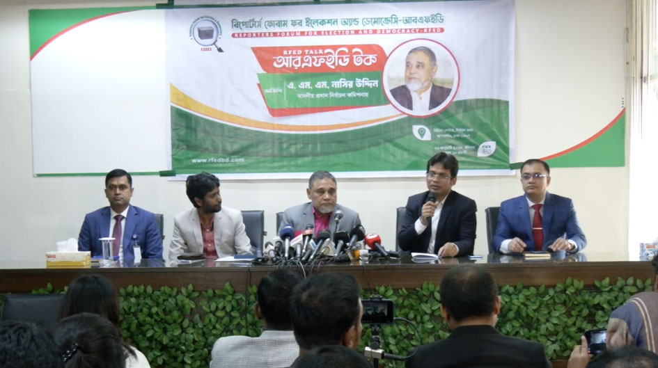 নির্বাচন কমিশন বিটে কর্মরত সাংবাদিকদের সংগঠন আরএফইডি’র সংলাপে যোগ দেন প্রধান নির্বাচন কমিশনার এ এম এম নাসির উদ্দিন। রোববার নির্বাচন ভবনে আয়োজিত সংলাপে সংস্কার প্রস্তাব, আগামী জাতীয় নির্বাচনের প্রস্তুতি, নির্বাচন কমিশনের সাম্প্রতিক কার্যক্রম নিয়ে কথা বলেন প্রধান নির্বাচন কমিশনার। এসব বিষয়ে সাংবাদিকদের নানা প্রশ্নের জবাব দেন।