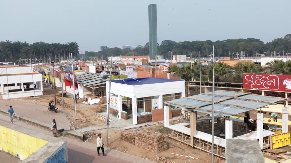 কাঠ কাটা, জোড়া দেয়া, রং তুলির আঁচড় আর পেরেক- হাতুড়ির টুং টাং আওয়াজ বাংলা একাডেমি প্রাঙ্গন ও সোহরাওয়ার্দী উদ্যান জুড়ে। এই কর্মযজ্ঞ অমর একুশে বইমেলার প্রস্তুতি ঘিরে। বইমেলার স্টলগুলোর অবকাঠামো তৈরি হলেও এখন চলছে শেষ মুহূর্তের প্রস্তুতি। নির্ধারিত সময়ের মধ্যে কাজ শেষ করতে ব্যস্ত সময় পার করছে শ্রমিকরা।