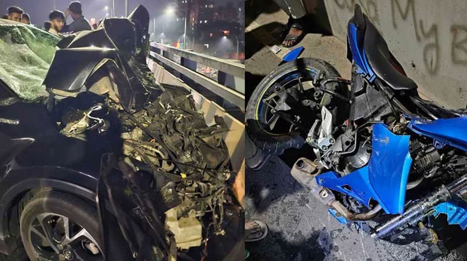 অনলাইন ডেস্ক : রাজধানীর কালশী ফ্লাইওভারে প্রাইভেট কারের সঙ্গে মোটরসাইকেলের সংঘর্ষে মোটরসাইকেল চালক ও আরোহী নিহত হয়েছেন। শুক্রবার রাত ১০টার দিকে এ দুর্ঘটনাটি ঘটে।