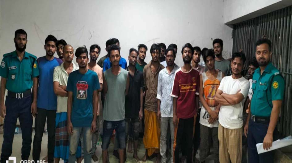 গ্রেফতার ব্যক্তিরা হলো– আলী (৩৯), পলাশ (২৭), রাকিব (২২), শ্রাবণ (২৭), শরীফ (৩১), শাফিন (২০), রাব্বি (১৯), শাহাজাদা (৩২), রুবেল (২৬), রহিত (২২), রুবেল মেহেদী (২০), আকাশ (২০), তাজউদ্দিন (২৮), জাবেদ (৩২), সালাউদ্দিন (২৭), রেন্টু (৩২), শাকিল (২০), সফিক (৩২), আনিস (২৫), রনি (২২), সাগর (১৯), তোজাফুল (৩৫), সাদ্দাম (২৪), আকিব (২২), আমেন (৩২) ও তাহমিনা (২৬)।