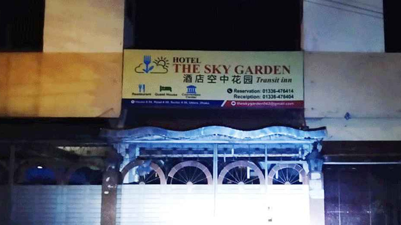 মঙ্গলবার (২ সেপ্টেম্বর) রাতে উত্তরা ৬ নম্বর সেক্টরের ‘হোটেল দ্য স্কাই গার্ডেন’ থেকে তাদের গ্রেপ্তার করে পুলিশ। গ্রেফতারকৃতরা হলেন ময়মনসিংহের হালুয়াঘাট উপজেলার উত্তর খয়রাকুরি গ্রামের মৃত সিরাজুল ইসলামের ছেলে শাহাদাৎ হোসেন সুজন (৩৪), রাজশাহীর মতিহার উপজেলার শ্যামপুর গ্রামের জাহিদুর রহমানের ছেলে মো. শামীম (৩৯), বাগেরহাটের মোল্লারহাট উপজেলার কামারগ্রামের ওদুত মোল্লার ছেলে শাকিল মোল্লা (২৩), নওগার মহাদেবপুর উপজেলার বিনোদপুর গ্রামের আফজাল হোসেনের ছেলে রায়হান (২৪), ঢাকার নবাবগঞ্জের দোহার এলাকার মো. মহসিনের ছেলে মো. পারভেজ (২৭), ঝিনাইদহের কালিগঞ্জ উপজেলার শিবনগর গ্রামের আজই উদ্দিনের ছেলে আশরাফুল আলম (৩৫), নওগাঁর পত্নীতলা উপজেলার বাকরইল গ্রামের আবু সাঈদের ছেলে আবু সায়েম (৪৬) ও পাঁচ নারী। এ বিষয়য়ে উত্তরা পূর্ব থানার ভারপ্রাপ্ত কর্মকর্তা (ওসি) মোহাম্মদ গোলাম মোস্তফা গণমাধ্যমকে বলেন, গ্রেপ্তার ১২ জনের মধ্যে পাঁচ নারী হোটেলটিতে পতিতাবৃত্তি করতো। আর বাকিদের মধ্যে আবু সায়েম হোটেলটির ম্যানেজার, আশরাফুল আলম ফ্লোর ইনচার্জ, রায়হান ও শাকিল ক্লিনার, শাহাদাৎ হোসেন সুজন সেপ এবং ফ্রন্ট ডেক্স রিসিপশনিস্ট পারভেজ ও শামীম।