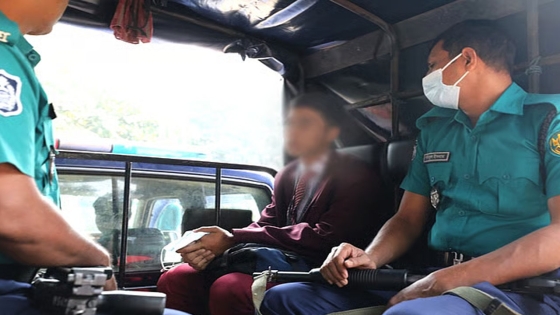 ঘটনাস্থলে দেখা যায়, আটক কিশোরের পরনে প্যান্ট-কোট-টাই রয়েছে। তার হাতে একটি ব্যাগ আছে। আটকের পর তাকে পুলিশের ভ্যানে তুলে নিয়ে যাওয়া হয়।