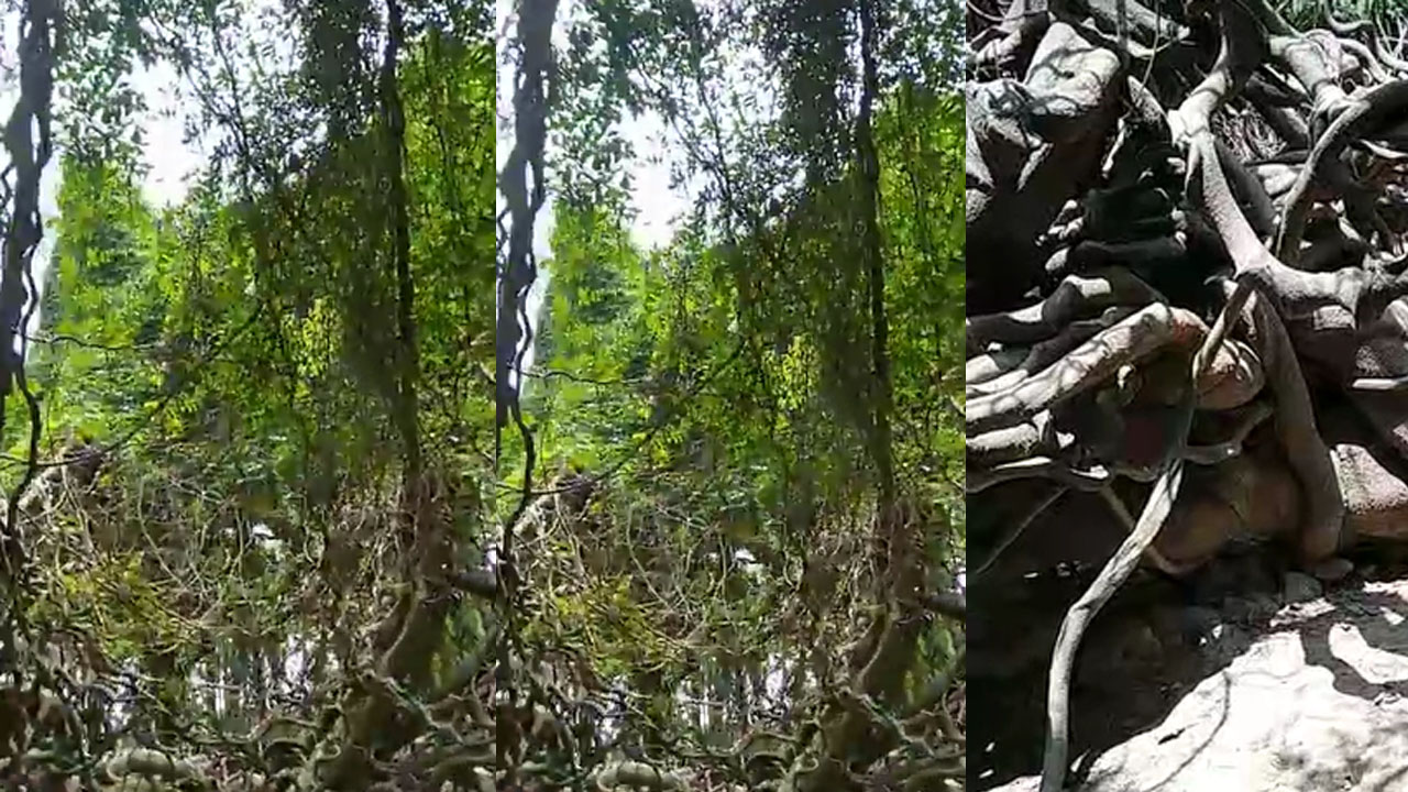 শালবন সংলগ্ন বাড়ির আঙিনায় উৎসুক নারী-পুরুষের ভিড়। মাটি থেকে বেরিয়েছে প্যাঁচানো চারটি মোটা লতা। একটির সঙ্গে আরেকটি পেঁচিয়ে ওপরে উঠে আশপাশের শালগাছের চূড়ায় মিশেছে। দূর থেকে মনে হবে এটি নীলাকাশে...