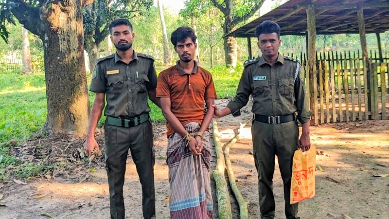 নবাবগঞ্জে সংরক্ষিত বনের গাছ কাটায় গ্রেপ্তার