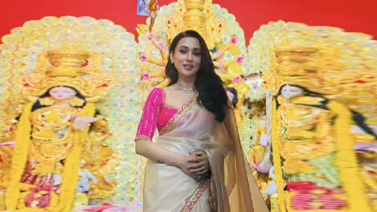 কোমরে আঁচল গুঁজে নিজেই নেমে পড়লেন পূজার জোগাড়ে। কখনো পূজার মঞ্চে দেবীকে উৎসর্গ করা সব আয়োজন গঙ্গাজল ছড়িয়ে শুদ্ধ করছেন। আবার কখনো পূজার থালা গোছাচ্ছেন। এভাবেই মিমি আবাসনের পূজার সঙ্গে প্রত্যক্ষভাবে জড়িয়ে পড়েন।