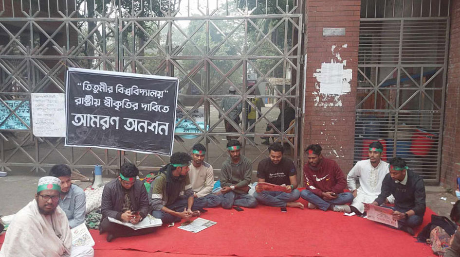 অনলাইন ডেস্ক : স্বতন্ত্র বিশ্ববিদ্যালয়ের রাষ্ট্রীয় স্বীকৃতির দাবিতে তৃতীয় দিনের মতো অনশন কর্মসূচি পালন করছেন তিতুমীর কলেজের শিক্ষার্থীরা।