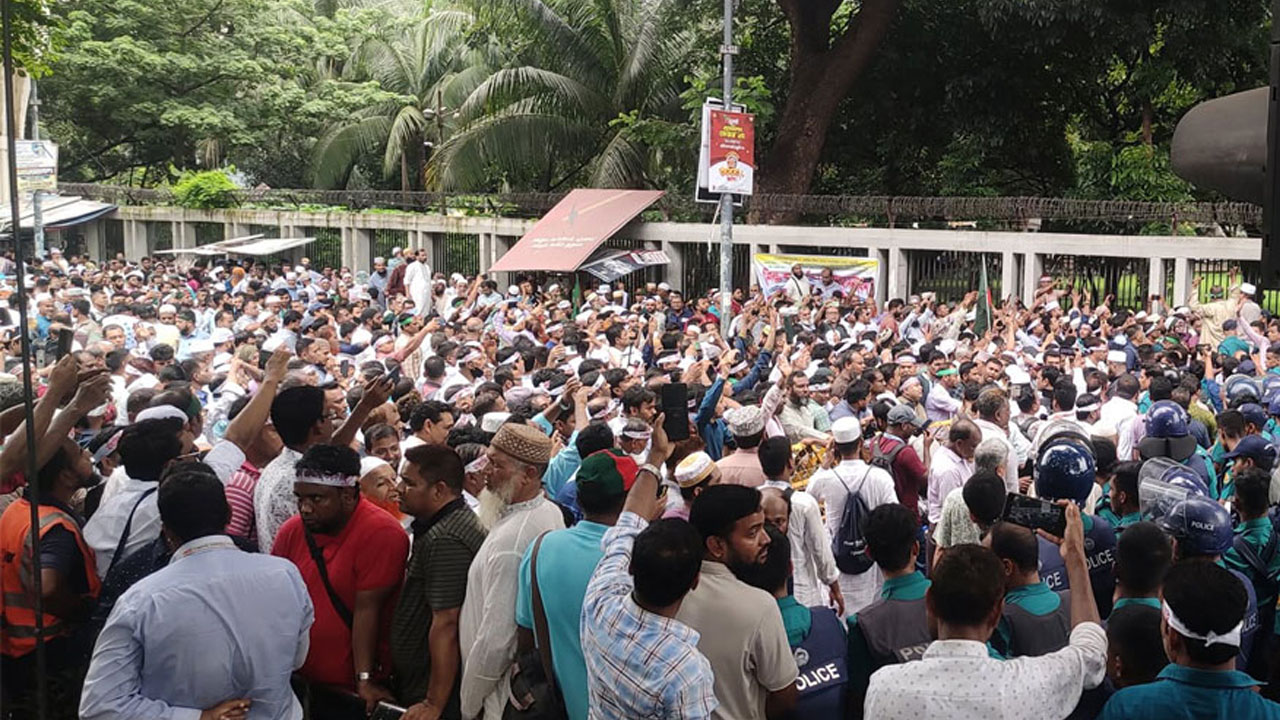 বুধবার (১৩ আগস্ট) জাতীয় প্রেস ক্লাবের সামনে এই শিক্ষক সমাবেশের আয়োজন করেছে ‘এমপিওভুক্ত শিক্ষা জাতীয়করণ প্রত্যাশী জোট’। তারা জাতীয় প্রেস ক্লাবের পাশের সচিবালয়ের মোড় থেকে কদম ফোয়ারা পর্যন্ত অবস্থান নেয়। তাই প্রেস ক্লাবের সামনের তোপখানা রোড বন্ধ থাকায় এই পথের যানবাহনগুলোকে শিক্ষা ভবন মোড় হয়ে সচিবালয়ের সামনে দিয়ে গুলিস্তান মোড়ে যেতে হচ্ছে।
