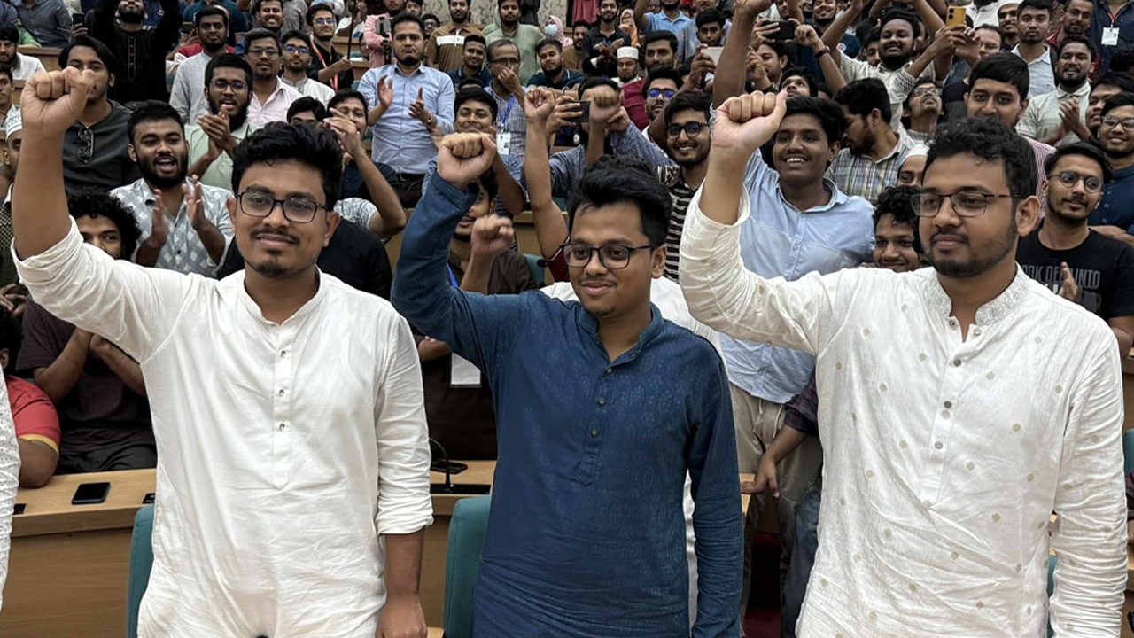 <> বিজয় একাত্তর হলে সাদিক ৯৯১, আবিদ ২৭৮, উমামা ১০৪ ভোট পেয়েছেন। আর জিএস পদে ফরহাদ ৭৭৯, হামীম ৪৪২ ভোট পেয়েছেন।