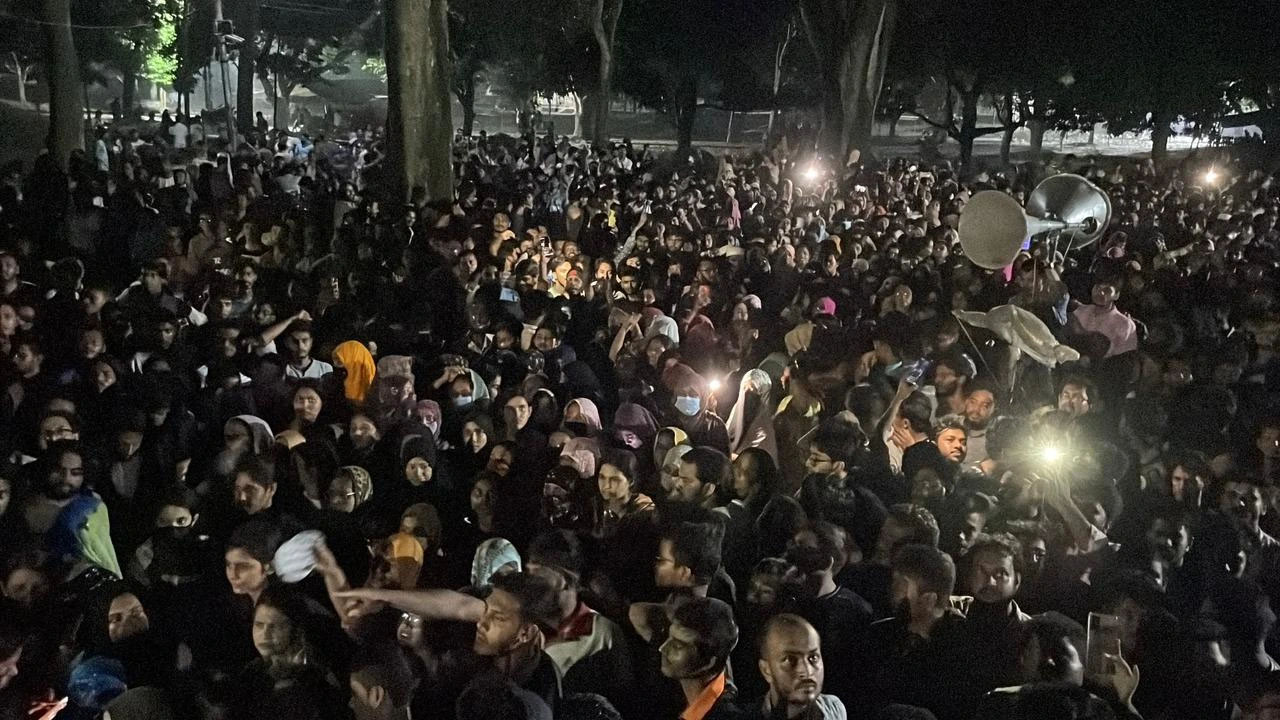 এর আগে আজ বিকেলে শিক্ষার্থীদের সাথে উপ-উপাচার্য অধ্যাপক মাঈন উদ্দিন ও প্রক্টর অধ্যাপক মাহবুবুর রহমানসহ কয়েকজন শিক্ষকের সাথে হাতাহাতির ঘটনা ঘটে। পরে এর বিচারের দাবিতে বিশ্ববিদ্যালয়ের শিক্ষক কর্মকর্তা কর্মচারীরা পূর্ণদিবস কর্মবিরতির ঘোষণা দেন। এর পরই পোষ্যকোটা বাতিলের দাবিতে আন্দোলনরত শিক্ষার্থীদের সাথে বিশ্ববিদ্যালয়ের মেয়েরা হল থেকে বেরিয়ে উপাচার্যের বাসভবনের সামনে বিক্ষোভ করেন।