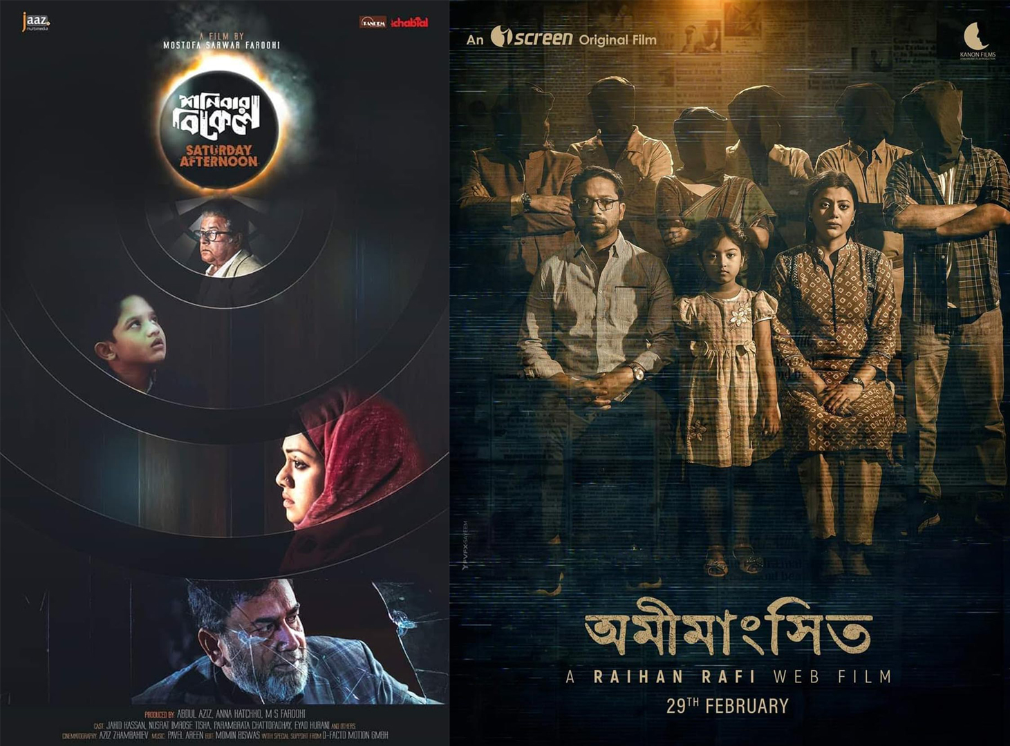 হলি আর্টিজানের ঘটনা নিয়ে নির্মিত ফারুকীর ছবি মুক্তি না দেয়ার ব্যাপারে জানা গিয়েছিল পতিত আওয়ামী লীগ সরকার ও তার সেন্সর বোর্ড ছবি মুক্তি দেয়ার অনুমতি দেয় নি। এরপর আওয়ামী সরকারের পতন,মোস্তফা সরয়ার ফারকীর সংস্কৃতি উপদেষ্টা হওয়া, সেন্সর বোর্ড নতুন করে গঠিত হবার পরও ‘শনিবার বিকেল’ কেন মুক্তি পায় নি বা মুক্তির প্রক্রিয়াধীন করা হয় নি সেটা এক রহস্য। এব্যাপারে ছবির পরিচালক উপদেষ্টা সাহেবও কোনো কিছু বলেন নি। অন্যদিকে ‘অমীমাংসিত’ ছবির ব্যাপারে আগের আমলে জানা গিয়েছিল যে সাংবাদিক সাগর রুনী হত্যাকান্ডের ঘটনার সাথে মিল থাকায় ছবি মুক্তির অনুমতি দেয়া হয় নি যদিও এখন ছবিটি মুক্তির ছাড়পত্র পেয়েছে। ২০২৩-২৪ সালে শুটিং হওয়া ‘অমীমাংসিত’ ছবির টিজার প্রকাশিত হয়েছিল গত বছরের ১২ ফেব্রæয়ারি। পরিচালক রায়হান রাফি নিজে সামাজিক যোগাযোগ মাধ্যমে প্রশ্ন তুলেছিলেন-‘কে খুন করলো অর্নব আর নীরুকে? মুখোশধারী লোকগুলো কারা? এই অমিমাংসিক রহস্যের জট কী আদৌ খুলবে? এরপর ২৯ ফেব্রæয়ারি ওটিটি প্লাটফর্মে মুক্তির ঘোষণা দেয়া হলে তথ্য ও সম্প্রচার মন্ত্রণালয় সেন্সর বোর্ডে ছবি জমা দেয়ার নির্দেশ দিলে ব্যাপারটি আলোচনা আসে। প্রশ্ন ওঠে ওটিটি প্লাটফর্মের ছবি মুক্তির ব্যাপারে কেন সেন্সর বোর্ডের অনুমতি লাগবে? অবশ্য সেন্সর বোর্ড তখন জানিয়েছিল যে এই ছবি সাধারনের মাঝে প্রদর্শনের উপযোগি নয় যদিও তারা কোনো ঘটনার সাথে মিলের কথা তখন জানায় নি।
