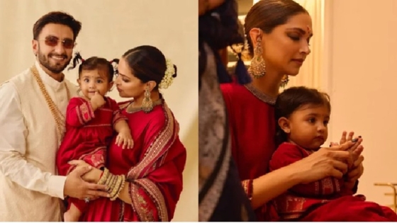 মায়ের সঙ্গে রং মিলিয়ে সেজেছে ছোট্ট দুয়া। দীপিকা ও দুয়া দু’জনের পরনেই লাল রঙের জমকালো চুড়িদার। তার সঙ্গে মানানসই সোনার গয়না। দীপাবলির কথা মাথায় রেখেই সেজেছেন মা ও মেয়ে। দুয়ার মাথার দু’দিকে ঝুঁটি বেঁধে দিয়েছেন দীপিকা। অন্য দিকে বাবার পরনে সাদা ও ঘিয়ে রঙের মিশেলে শেরওয়ানি।