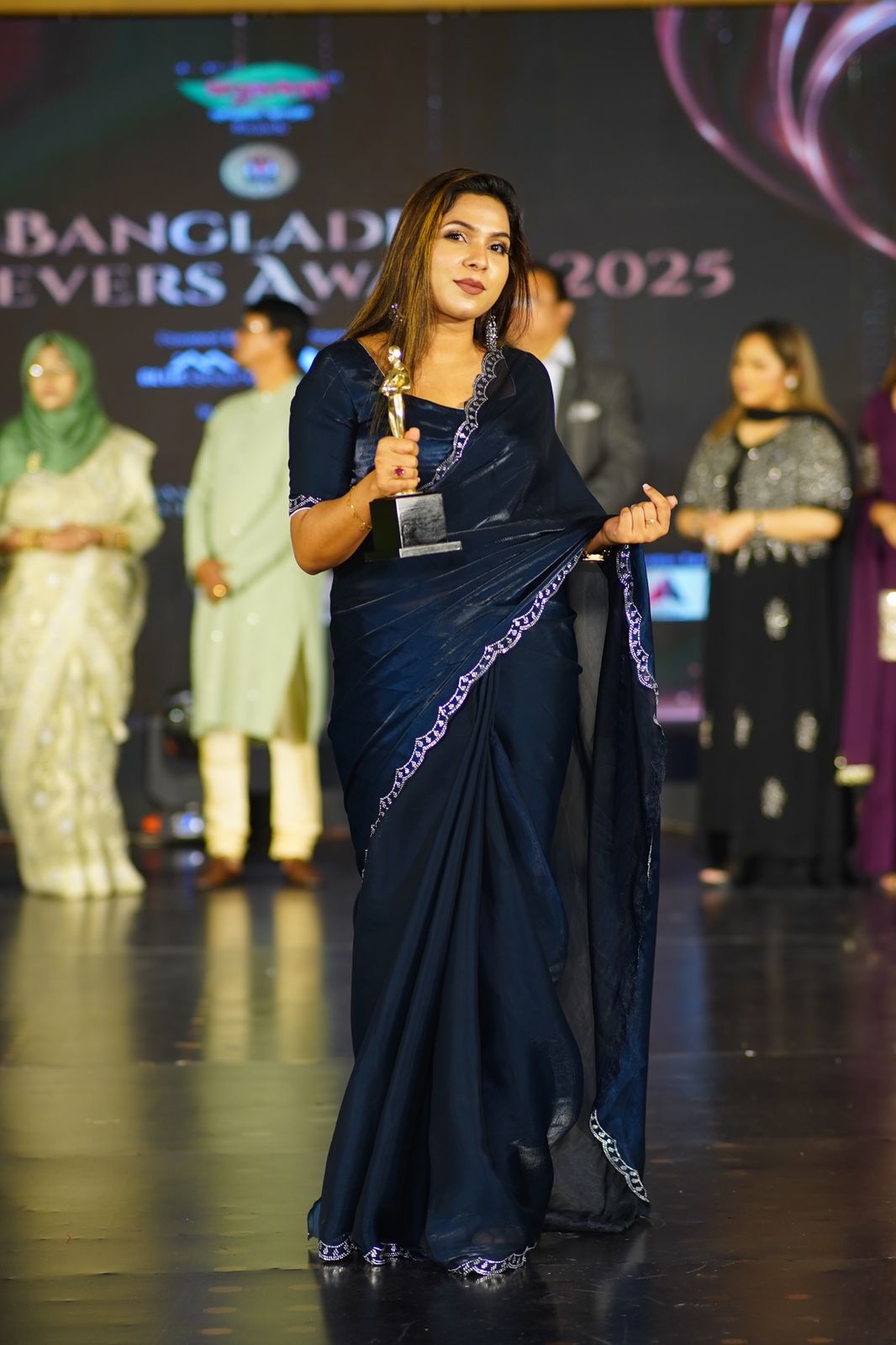 বাংলাদেশ অ্যাচিভার্স অ্যাওয়ার্ডে সেরা গায়িকা নির্বাচিত হয়ে আলোচনায় এসেছেন তরুণ প্রতিভা, শিল্পী আক্তার রিয়া। জানা যায় রঙিন আলো, গানের ঝংকার আর করতালির উচ্ছ্বাসে মুখরিত ছিল রাজধানীর বাংলাদেশ-চীন মৈত্রী সম্মেলন কেন্দ্র। সেই আবেগঘন পরিবেশে ঘোষণা আসে ‘বাংলাদেশ অ্যাচিভার্স অ্যাওয়ার্ড-২০২৫ এর সেরা গায়িকা নির্বাচিত হয়েছেন শিল্পী আক্তার রিয়া। গাজীপুরের ছোট শহর থেকে উঠে আসা এই কণ্ঠশিল্পী প্রমাণ করেছেন, প্রতিভা ও অধ্যবসায় থাকলে স্বপ্ন একদিন বাস্তব হয়। গত শনিবার (২ নভেম্বর) রাজধানীর বাংলাদেশ-চীন মৈত্রী সম্মেলন কেন্দ্রে অনুষ্ঠিত হয় ‘বাংলাদেশ অ্যাচিভার্স অ্যাওয়ার্ড’এর চতুর্থ আসর। সংগীতজগতে অবদানের স্বীকৃতি হিসেবে ‘সেরা গায়িকা’র সম্মান পান শিল্পী আক্তার রিয়া। পুরস্কারটি তুলে দেন অনুষ্ঠানের প্রধান অতিথি বিএনপির ভাইস চেয়ারম্যান ড. আসাদুজ্জামান রিপন ও জনপ্রিয় অভিনেতা আজিজুল হাকিম।