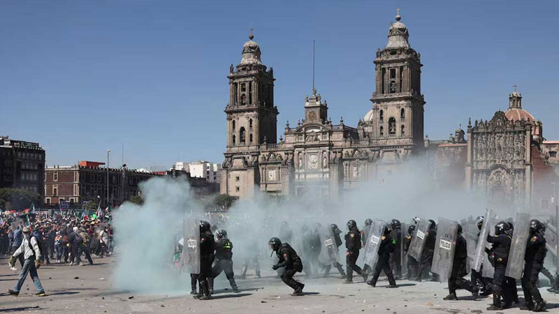 মেক্সিকো সিটির নিরাপত্তাপ্রধান পাবলো ভাজকেজ জানিয়েছেন, কয়েক ঘণ্টা শান্তিপূর্ণ থাকার পর কিছু বিক্ষোভকারী মুখ ঢেকে সহিংসতা শুরু করে। এতে ১০০ পুলিশ আহত হন, যার মধ্যে ৪০ জনকে হাসপাতালে ভর্তি করতে হয়। আহত হন ২০ জন বিক্ষোভকারীও।