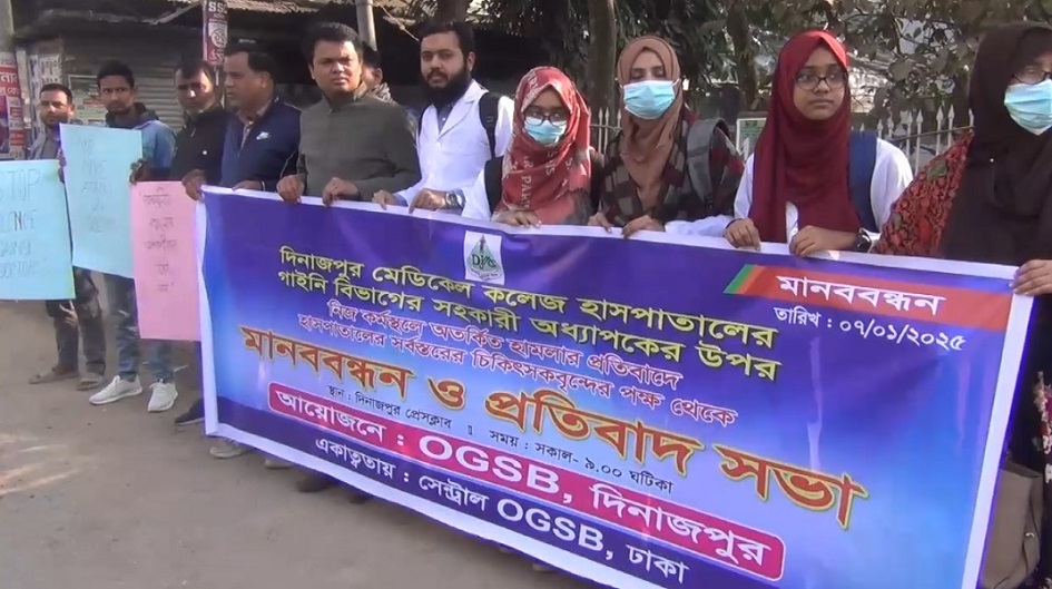 আজ মঙ্গলবার (৭ জানুয়ারী) সকালে দিনাজপুর প্রেসক্লাবের সামনের সড়কে ঘন্টাব্যাপী মানবনবন্ধনটি অনুষ্ঠিত হয়। এসময় মানববন্ধনকারীরা অভিযোগ করেন, গত ২৬ ডিসেম্বর গাইনি সার্জন সহকারী অধ্যাপক ডা. আরজু শামীমা রহমান মেডিকেল কলেজ হাসপাতালে জনৈক গর্ভবতী রোগীর অপারেশনের আগে কিছু পরামর্শ প্রদান করেন।