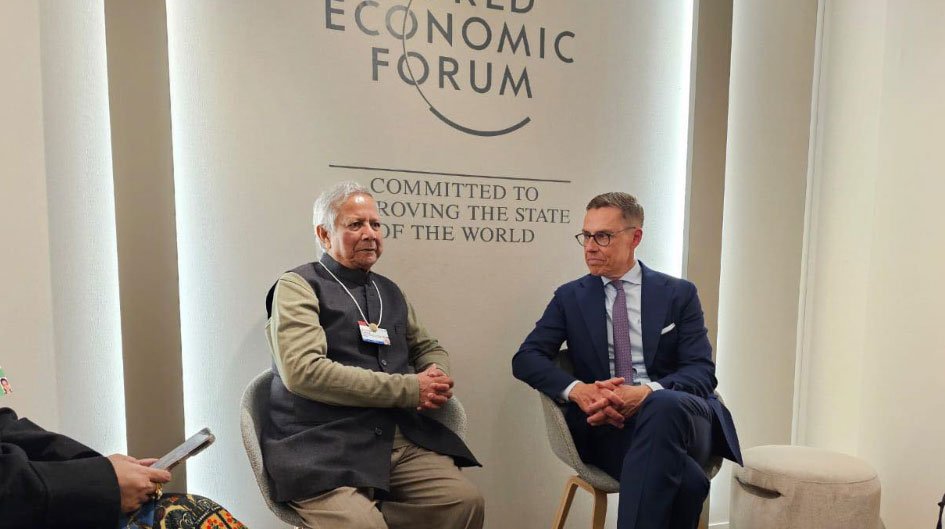 নিজস্ব প্রতিবেদক: সুইজারল্যান্ডের দাভোসে ওয়ার্ল্ড ইকোনমিক ফোরামের সম্মেলনের ফাঁকে প্রধান উপদেষ্টা প্রফেসর মুহাম্মদ ইউনূসের সঙ্গে বৈঠক করেছেন ফিনল্যান্ডের প্রেসিডেন্ট আলেকজান্ডার স্টাব। প্রধান উপদেষ্টার প্রেস উইং এ তথ্য জানিয়েছে।