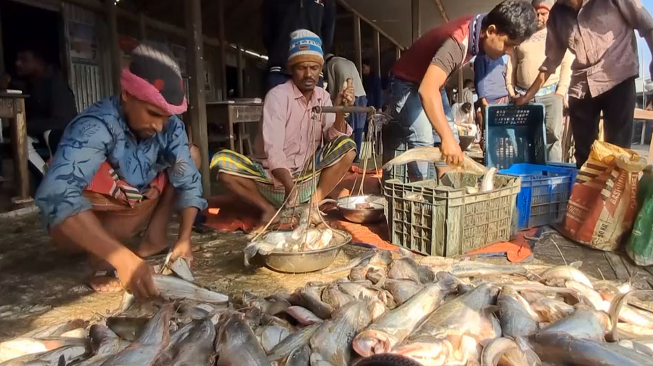 কিশোরগঞ্জের করিমগঞ্জের বালিখোলা বাজার। ভোরের আলো ফুটার আগেই ঘাটে পৌঁছাতে শুরু করে জেলেদের মাছ বোঝাই নৌকা। মাছ নামানোর পরপরই শুরু হয় ক্রেতা-বিক্রেতাদের হাঁক-ডাক।