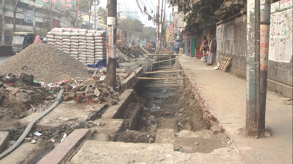 নগরী ঘুরে দেখা যায় শহরের বিবি রোড, কালিরবাজার, নিতাইগঞ্জ ও মন্ডলপাড়া এলাকায় ড্রেন নির্মাণের কাজ চলছে। এসব এলাকায় রাখা নির্মাণ সামগ্রী আর ময়লা আবর্জনার কারণে সড়কে চলাচল করতে পারছেনা সাধারণ মানুষ। সেই সাথে ফুটপাত বন্ধ থাকায় চরম ভোগান্তিতে পড়ছেন নগরবাসী।