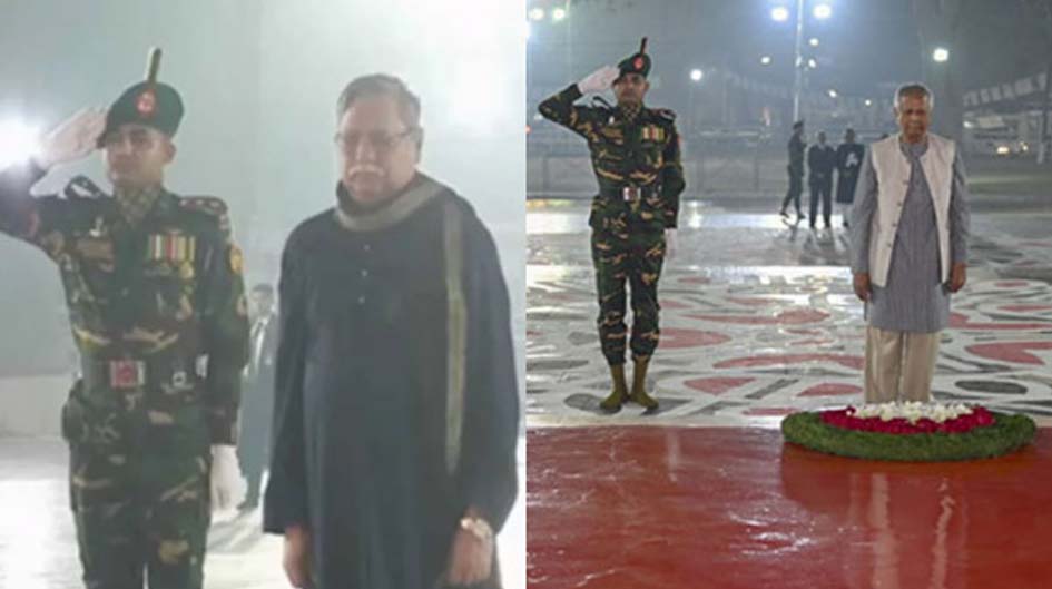 অন্তর্র্বতী সরকারের প্রধান ড. মুহাম্মদ ইউনূস রাত ১২টা ১৩ মিনিটে কেন্দ্রীয় শহীদ মিনারে পুষ্প¯বক অর্পণ করে শ্রদ্ধা নিবেদন করেন।