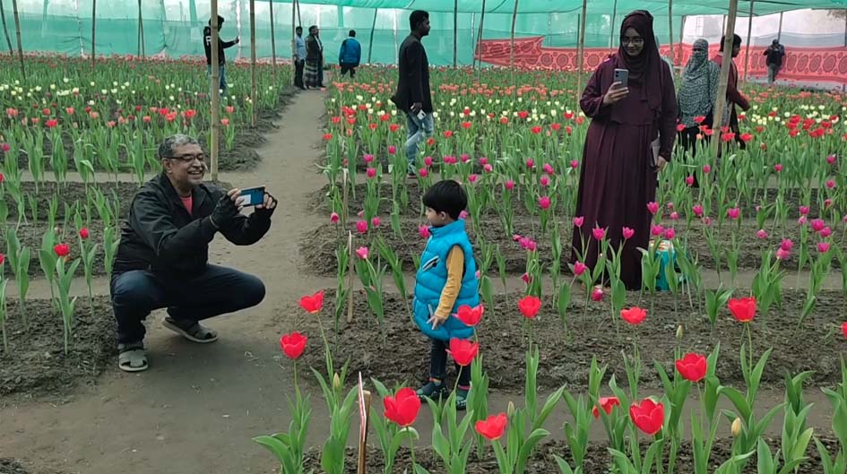 জানুয়ারির শুরুতে জেলার শারিয়ালজোত ও দর্জিপাড়া গ্রামে রোপন করা হয় ৯ প্রজাতির টিউলিপ ফুল। রোপনের এক মাসের মধ্যে ফুটে এই ফুল। বাগানে ফোটা নানা প্রজাতির বাহারি ফুল দেখতে প্রতিনিয়ত ভিড় করছেন দর্শনার্থীরা। কেউ ফুল দেখছেন কেউ আবার মুহূর্তগুলো ফ্রেমে বন্দী করছেন।