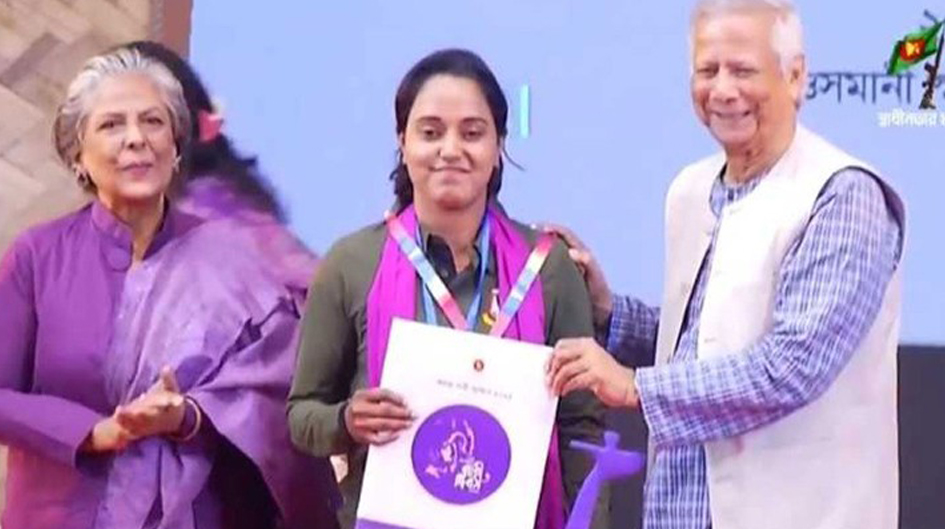 আজ শনিবার (৮ই মার্চ) সকালে রাজধানীর ওসমানী স্মৃতি মিলনায়তনে আয়োজিত এক অনুষ্ঠানে তিনি এই সম্মাননা প্রদান করেন।