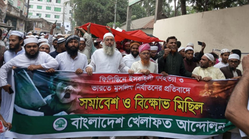 অনলাইন ডেস্ক: গাজায় বর্বর ইসরাইলি হামলা ও গণহত্যা এবং ভারতে মুসলিম নির্যাতনের প্রতিবাদে রাজধানী ঢাকায় বিক্ষোভ মিছিল করেছে বাংলাদেশ খেলাফত আন্দোলন। বাদ জুমা কামরাঙ্গীরচর মারকাজুল খেলাফত জামিয়া ইসলামিয়া মাদ্রাসা প্রাঙ্গন থেকে মিছিল থেকে বের হয়। এসময় বক্তারা আরব দেশগুলোকে ঐক্যবদ্ধ হওয়ার আহবান জানান।