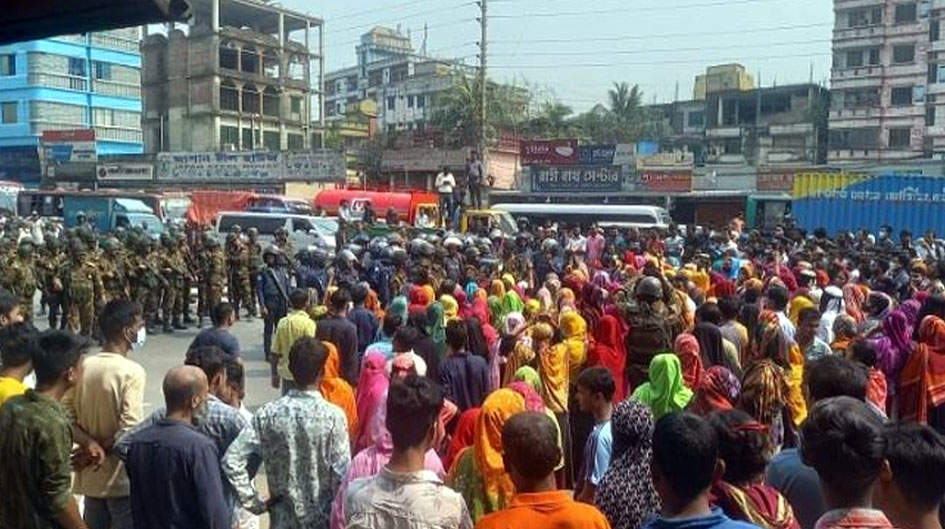 রোববার (২৩ মার্চ) সকাল ৭টা থেকে মহাসড়ক অবরোধ করে বিক্ষোভ শুরু করেন তারা। এতে ওই মহাসড়কের উভয়দিকে যানবাহন চলাচল বন্ধ হয়ে দীর্ঘ যানজটের সৃষ্টি হয়। এতে চরম দুর্ভোগে পড়েন মহাসড়কে চলাচলকারীরা। পরে পুলিশ ও সেনাবাহিনীর সদস্যরা এসে আন্দোলনরত শ্রমিকদের বুঝিয়ে মহাসড়ক থেকে কারখানার সামনে নেওয়া হলে সকাল সাড়ে ৮টার দিকে মহাসড়কে যান চলাচল স্বাভাবিক হয়।