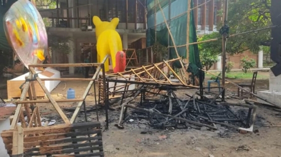 নিজস্ব প্রতিবেদক: ঢাকা বিশ্ববিদ্যালয়ের চারুকলা অনুষদে নববর্ষের শোভাযাত্রা উপলক্ষে বানানো দুটি মোটিফ পুড়ে গেছে। আজ শনিবার ভোরে সেখানে আগুন লাগে বলে জানা যায়।