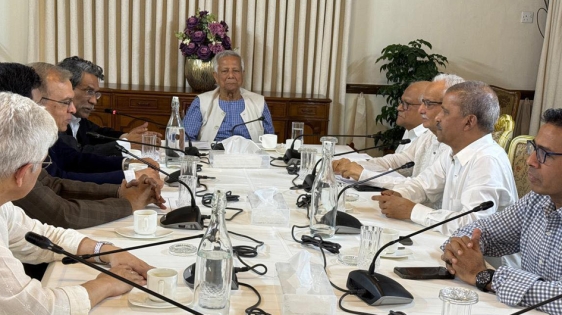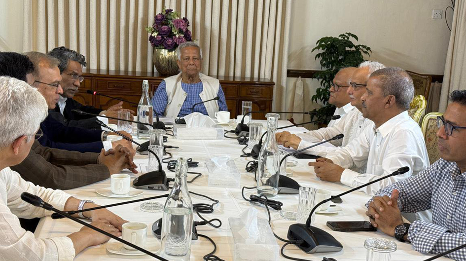 নিজস্ব প্রতিবেক: জাতীয় ঐকমত্য কমিশনের সদস্যদের সঙ্গে বৈঠক করেছেন প্রধান উপদেষ্টা প্রফেসর মুহাম্মদ ইউনূস। সোমবার (২৮ এপ্রিল) রাষ্ট্রীয় অতিথি ভবন যমুনায় এই বৈঠক অনুষ্ঠিত হয়। বৈঠকে রাজনৈতিক দলগুলোর সঙ্গে চলমান আলোচনার অগ্রগতি পর্যালোচনা করেছে জাতীয় ঐকমত্য কমিশন। এসময় সংস্কার প্রক্রিয়া নিয়েও বিস্তারিত আলোচনা হয়। কমিশনের সহ-সভাপতি প্রফেসর আলী রীয়াজ ইতোমধ্যেই রাজনৈতিক দলগুলোর সঙ্গে যেসব আলোচনা হয়েছে সে ব্যাপারে কমিশন প্রধানকে অবহিত করেন। কমিশনের সদস্য ড. বদিউল আলম মজুমদার, ড. ইফতেখারুজ্জামান, বিচারপতি এমদাদুল হক এবং সফর রাজ হোসেনও তাতে অংশ নেন। বৈঠকে আরও উপস্থিত ছিলেন আইন উপদেষ্টা ড. আসিফ নজরুল, শিল্প ও গণপূর্ত উপদেষ্টা আদিলুর রহমান খান এবং প্রধান উপদেষ্টার বিশেষ সহকারী মনির হায়দার।