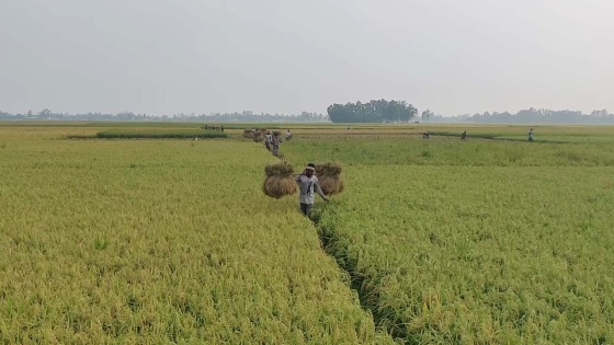 দিনাজপুরে বোরো ধান কাটা ও মাড়াই শুরু হয়েছে। এবার আবহাওয়া অনুকূলে থাকায় ফলন ভালো হলেও দাম নিয়ে দুশ্চিন্তায় এ অঞ্চলের চাষিরা। তবে ধানের নায্য মূল্য নিশ্চিত নিয়ে শঙ্কা জানিয়েছেন তারা। জেলা কৃষি অফিসের তথ্য মতে, এবার চলতি বোরো মৌসুমে দিনাজপুর জেলায় ১ লাখ ৭৪ হাজার ৫০০ হেক্টর জমিতে ধানের আবাদ হয়েছে। তবে মাঠ পর্যায়ে সবধরনের সহযোগিতা দেওয়া হচ্ছে বলে জানিয়েছে, কৃষি বিভাগ। দিনাজপুরের মাঠে মাঠে চলছে বোরো ধান কাটা ও মাড়াইয়ের ব্যস্ততা। এবার ফলন ভালো হলেও দাম নিয়ে দুশ্চিন্তায় চাষিরা। সরকারি খাদ্য গুদামে ধান দিতে গিয়ে হয়রানি শিকার হচ্ছে বলে অভিযোগ তাদের। এ কারণে সরকারি ব্যবস্থাপনার বাইরে ধান বিক্রি করতে গিয়ে অসাধু ব্যবসায়ী সিন্ডিকেটের কবলে পড়ছে তারা। এমনকি সরকার নির্ধারিত দামে চেয়ে কম দামে ধান বিক্রি করতেও বাধ্য হচ্ছে। এবার আবহাওয়া অনুকূলে থাকায় প্রতি বিঘায় ধানের ফলন হয়েছে ২২ থেকে ২৫ মণ। তবে সার, কীটনাশক ও ধান কাটাই-মাড়াইসহ সবকিছুর খরচ বেড়ে যাওয়ায় লোকসানের আশঙ্কা করছে কৃষক। প্রণোদনার মাধ্যমে কৃষকদের ধান চাষে আগ্রহী করে তোলার পাশাপাশি মাঠ পর্যায়ে সবধরনের সহযোগিতা দেওয়া হচ্ছে বলে জানিয়েছে উপজেলা কৃষি অফিসার আরজেনা বেগম। তবে ধানের নায্য মূল্য নিশ্চিত দাবি জানিয়েছেন চাষিরা।