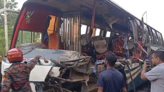 দিনাজপুরের ঘোড়াঘাট উপজেলার নূরজাহানপুরে সড়ক দুর্ঘটনায় ৫ জন নিহত হয়েছে। আজ (শনিবার) ভোরে উপজেলার নূরজাহানপুর এলাকায় এই দুর্ঘটনাটি ঘটে। স্থানীয় সূত্রে জানা গেছে, ঘটনাস্থলে আমবোঝাই কয়েকটি ট্রাক দাঁড়িয়েছিল। ভোর ৪টার পর পঞ্চগড় থেকে ছেড়ে আসা ঢাকাগামী নাবিল পরিবহনের একটি বাস পেছন থেকে ট্রাককে ধাক্কা দেয়। এতে ৫ জন নিহত হয় এবং আহত হন ১৫ জন। আহতদের মধ্যে কয়েকজনের অবস্থা আশঙ্কাজনক। বর্তমানে আহতরা স্থানীয় হাসপাতালে ভর্তি হয়ে চিকিৎসাধীন রয়েছেন। দুর্ঘটনার খবর পেয়ে স্থানীয় প্রশাসন ও ফায়ার সার্ভিস ঘটনাস্থলে পৌঁছে উদ্ধার তৎপরতা চালায়। এ ঘটনায় এলাকায় শোকের ছায়া নেমে এসেছে। নিহতদের পরিচয় তাৎক্ষণিকভাবে জানা যায়নি। এ বিষয়ে বিস্তারিত জানার চেষ্টা চলছে।