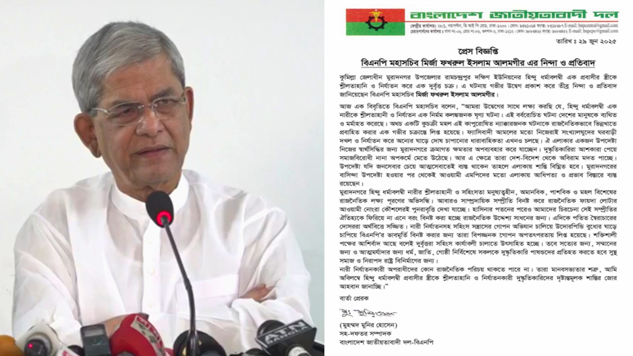 নারী নির্যাতনকারী অপরাধীদের কোনো রাজনৈতিক পরিচয় থাকতে পারে না। তারা মানবসভ্যতার শত্রু, আমি অবিলম্বে হিন্দু ধর্মাবলম্বী প্রবাসীর স্ত্রীকে শ্লীলতাহানি ও নির্যাতনকারী দুস্কৃতিকারিদের দৃষ্টান্তমূলক শাস্তির জোর আহ্বান মির্জা ফখরুল।