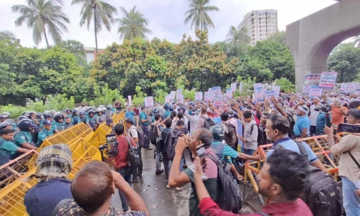 আজ সোমবার (১৫ সেপ্টেম্বর) বিকালে জাতীয় প্রেস ক্লাবের সামনে থেকে প্রধান উপদেষ্টার বাসভবন অভিমুখে যাত্রা শুরু করলে হাইকোর্টসংলগ্ন কদম ফোয়ারার সামনে তাদের আটকে দেয় আইনশৃঙ্খলা রক্ষাবাহিনী। পরে আন্দোলনকারীদের ছত্রভঙ্গ করতে জলকামান ও সাউন্ড গ্রেনেড নিক্ষেপ করা হয়। এ সময় শিক্ষকরা পিছিয়ে আবার প্রেস ক্লাবের সামনে চলে আসেন।