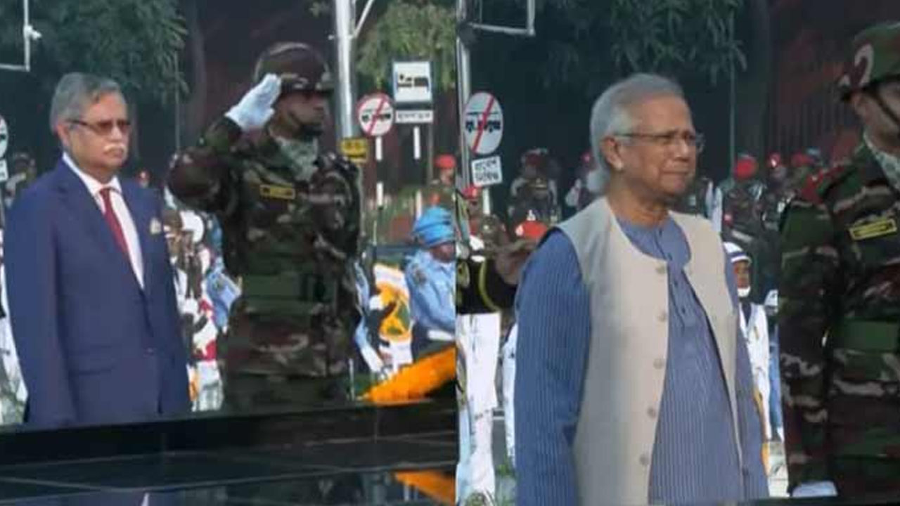সশস্ত্র বাহিনী দিবসে শিখা অনির্বাণে পুষ্পস্তবক অর্পণ করে মুক্তিযুদ্ধে শহীদদের শ্রদ্ধা জানিয়েছেন রাষ্ট্রপতি মো. সাহাবুদ্দিন ও প্রধান উপদেষ্টা ড. মুহাম্মদ ইউনূস।