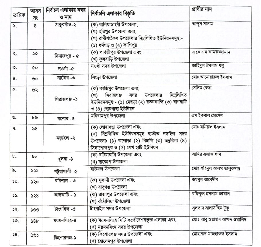 এর আগে, গত ৩ নভেম্বর ২৩৭ আসনে প্রার্থী ঘোষণা করেছিল বিএনপি।