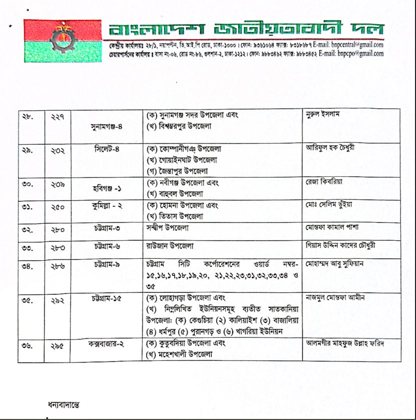আসন্ন জাতীয় সংসদ নির্বাচন সামনে রেখে আরও ৩৬ আসনে প্রার্থীর নাম ঘোষণা করেছে বিএনপি।