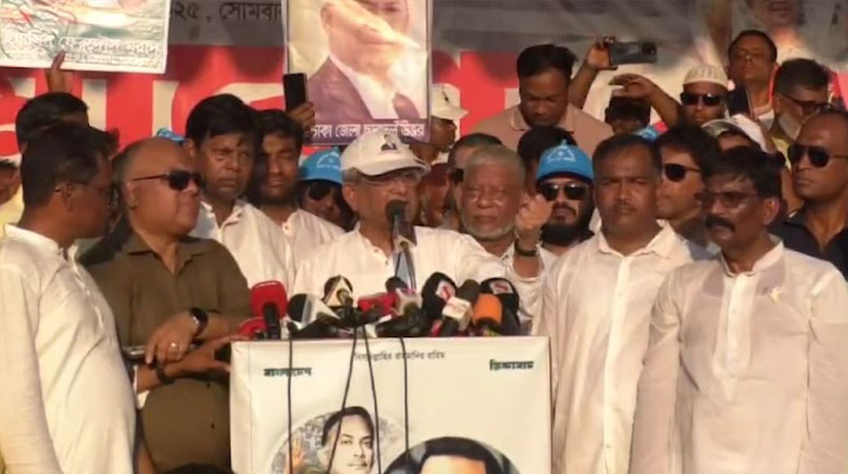 নিজস্ব সংবাদদাতা: দেশকে গৃহ যুদ্ধের দিকে না নিয়ে দ্রুত জাতীয় নির্বাচনের মাধ্যমে জনগণের সরকার প্রতিষ্ঠা করতে হবে বলে মন্তব্য করেছেন বিএনপির মহাসচিব মির্জা ফখরুল ইসলাম আলমগীর। সোমবার বিকেলে ঢাকার ধামরাই পৌর এলাকায় বিএনপির জনসভায় তিনি এ মন্তব্য করেন। দেশে স্থিতিশীল পরিবেশ তৈরিতে দ্রুত নির্বাচনের আয়োজন করতে অন্তর্বর্তী সরকারের প্রতি আহ্বান জানান মির্জা ফখরুল। এছাড়াও এদিন মুন্সিগঞ্জ, নরসিংদী, নাটোর, নড়াইল, গোপালগঞ্জ জেলায় সমাবেশ করে বিএনপি।