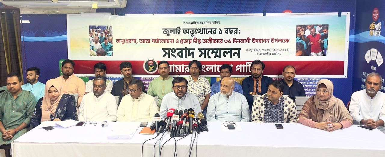 একাত্তর, নব্বই ও চব্বিশের অঙ্গীকার বাস্তবায়নে সকলকে ঐকমত্যে পৌঁছার আহ্বান জানিয়েছে আমার বাংলাদেশ পার্টি ‘এবি পার্টি’। অনুপ্রেরণা, আত্মপর্যালোচনা ও প্রত্যয়দীপ্ত অঙ্গীকারে জুলাই গণঅভ্যুত্থানের ৩৬ দিন উদযাপনের ঘোষণা দিয়েছে দলটি। আজ শুক্রবার সকাল ১১ টায় বিজয় নগরের দলের কেন্দ্রীয় কার্যালয়ে আয়োজিত এক সংবাদ সম্মেলনে এ বিষয়ে কর্মসূচির ঘোষণা দেন দলের চেয়ারম্যান মজিবুর রহমান মঞ্জু।