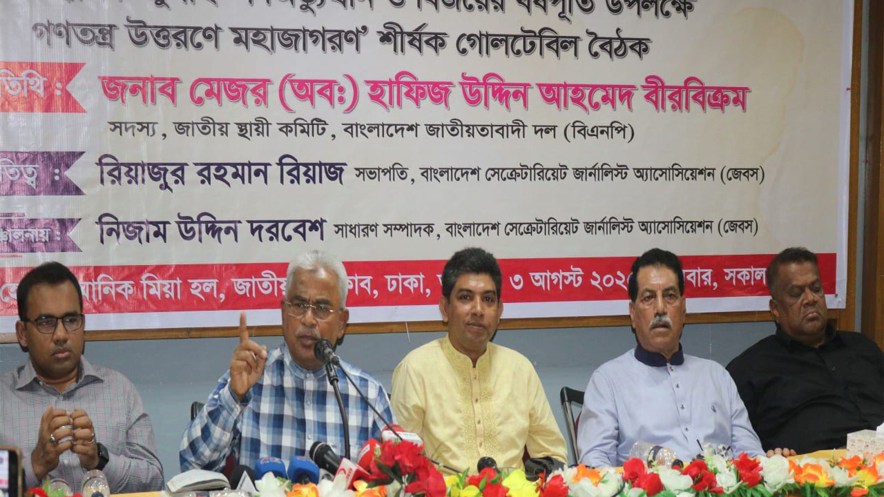 রোববার (৩ আগস্ট) জাতীয় প্রেসক্লাবে বাংলাদেশ সেক্রেটারিয়েট জার্নালিস্ট অ্যাসোসিয়েশন (জেবস) কর্তৃক আয়োজিত 'জুলাই গণঅভ্যুত্থান: গণতন্ত্র উত্তরণে মহাজাগরণ' শীর্ষক গোলটেবিল বৈঠকে প্রধান অতিথির বক্তব্যে তিনি এসব কথা বলেন।