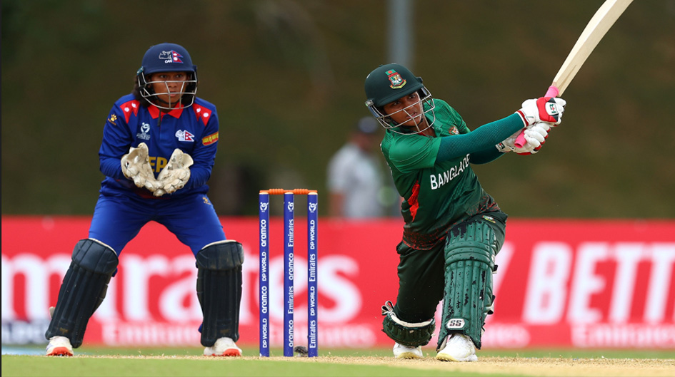 শনিবার (১৮ জানুয়ারি) টস হেরে আগে ব্যাট করে ১৮ ওভার ২ বলে সবকটি উইকেট হারিয়ে ৫২ রানের বেশি করতে পারেনি নেপাল অনূর্ধ্ব-১৯ দল। দলের হয়ে সর্বোচ্চ ১৯ রান করেন সানা পারভিন। জবাবে ব্যাট করতে নেমে ১৩ ওভার ২ বলেই জয়ের বন্দরে পৌঁছায় বাংলাদেশ।