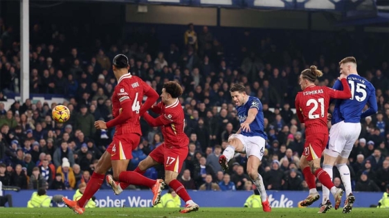 ম্যাচের ১১তম মিনিটেই লিড নেয় এভারটন। মাঝমাঠে ফ্রি কিক পেয়ে দারুণ বল বাড়ান ব্র্যাথওয়েইট, সেখান থেকে বল পেয়ে বক্সে ঢুকে কোনাকুনি শটে বল জালে জড়ান বেতো। মিনিট পাঁচেক পরই গোল শোধ করে লিভারপুল। সালাহর ক্রসে হেডে গোল করেন অ্যালিস্টার।