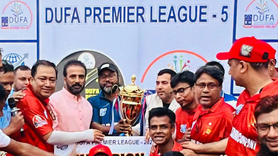 নিজস্ব প্রতিবেদক: ঢাকা বিশ্ববিদ্যালয়ের ব্যাচ ভিত্তিক বন্ধুদের বৃহত্তম সংগঠন ঢাকা বিশ্ববিদ্যালয় ফ্রেন্ডস অ্যালায়েন্স- ডুফা প্রিমিয়ার লিগ চ্যাম্পিয়ন হয়েছে টাইটান টাইগার্স। আর রানার্স আপ হয়েছে অ্যাভেঞ্জারস। শুক্রবার (২৮ ফেব্রুয়ারি) সকালে ঢাকা বিশ্ববিদ্যালয়ের জিমনেশিয়াম মাঠে এই লিগ অনুষ্ঠিত হয়। এতে চারটি টিম অংশ নেয়। লিগ পদ্ধতির খেলায় অংশ নেয়া দলগুলো হলো- ডুফা টাইটান টাইগার্স, ডুফা লায়ন্স, ডুফা বার্নার্স ও ডুফা অ্যাভেঞ্জারস। লিগ পদ্ধতির খেলায় শীর্ষস্থানীয় দল দুটি ফাইনালে অংশ নেয়।ফাইনালে ডুফা টাইটান টাইগার্স ডুফা এভেঞ্জার্সকে পরাজিত করে ডিপিএল ৫ম আসরের শিরোপা অর্জন করে। টুর্নামেন্ট শেষে পুরস্কার বিতরণ করেন বাংলাদেশ জাতীয় ক্রিকেট দলের কিংবদন্তি ব্যাটসম্যান জাবেদ ওমর বেলিম। প্রধান অতিথি ছিলেন গ্লোবাল ট্রেডিং কোম্পানির স্বত্বাধিকারী হাফিজুর রহমান। উল্লেখ্য এই গ্লোবাল ট্রেডিং কোম্পানি (জিটিসি) এ বছরের ডিপিএল-৫ এর টাইটেল স্পন্সর। পুরস্কার বিতরণী অনুষ্ঠানে উপস্থিত ছিলেন- ডুফার প্রতিষ্ঠাতা সভাপতি এনায়েত হোসেন পল্লব, প্রতিষ্ঠাতা সাধারণ সম্পাদক ড: নিয়ামুল ইসলাম, বর্তমান সভাপতি ঢাকা বিশ্ববিদ্যালয়ের সহকারী প্রক্টর প্রফেসর মাহবুব কায়সার, সাধারণ সম্পাদক দেলওয়ার হোসেন মিরাজ মিঠু, কোষাধ্যক্ষ আশ্রাফুল হাসান আদনান এফসিএ, স্পোর্টস স্ট্যান্ডিং কমিটির কো-অর্ডিনেটর মেজবাউল আলম টুটুলসহ অনেকে। ঢাকা বিশ্ববিদ্যালয়ের অধীনস্থ ৪২ টি বিভাগ, মেডিক্যাল কলেজ ও ১ টি ইঞ্জিনিয়ারিং ইন্সটিটিউটের ১৯৯৫-৯৬ শিক্ষাবর্ষে ভর্তি হওয়া প্রায় ৪৫০০ প্রাক্তন ছাত্র-ছাত্রীদের এলামনাই সংগঠন ডুফা। সদস্যদের কল্যাণে এর ১৫টি স্ট্যান্ডিং কমিটি নানামুখী কার্যক্রম পরিচালনা করে আসছে। স্পোর্টস স্ট্যান্ডিং এর মধ্যে অন্যতম । সদস্যদের কল্যাণে ডুফা প্রতিষ্ঠিত হলেও সংগঠনটি ইতিমধ্যে জাতীয় দুর্যোগ মোকাবেলায়ও প্রশংসনীয় ভূমিকা রেখেছে।