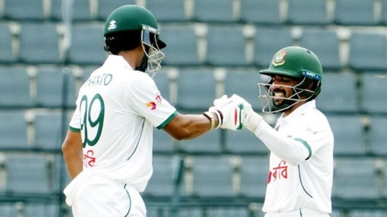 ক্রিজে এসে অভিজ্ঞ মমিনুল হকের সঙ্গে জুটি গড়ে সেই বিপর্যয় সামাল দেন অধিনায়ক নাজমুল হোসেন শান্ত। মধ্যাহ্ন বিরতির পর মাঠে ফিরে ভালোই খেলছিলেন। এগিয়ে যাচ্ছিলেন অর্ধশতকের পথে। কিন্তু সুযোগ হাতছাড়া করেছেন। ব্লেজিং মুজারাবানির অফ স্টাম্পের বাইরে লাফিয়ে ওঠা বলে বাজে শট খেলে উইকেট বিসর্জন দেন শান্ত। আউট হওয়ার আগে ৬৯ বলে ৬ চারে ৪০ রান করেন বাংলাদেশের অধিনায়ক। দলের সংগ্রহ তখন ৯৮ রান।