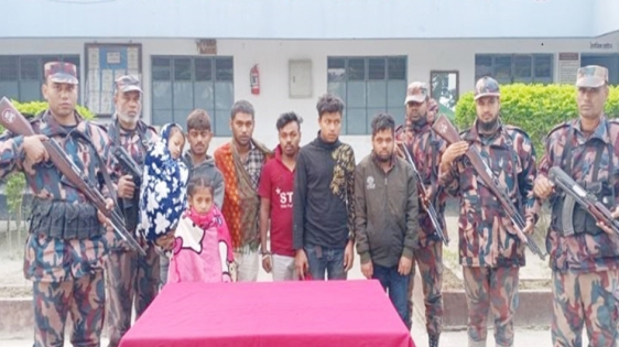 বেনাপোল সংবাদদতা: যশোরের বেনাপোল সীমান্ত দিয়ে ভারত থেকে অবৈধভাবে বাংলাদেশে প্রবেশের সময় দুই শিশুসহ ৭ বাংলাদেশিকে আটক করেছে বর্ডার গার্ড বাংলাদেশ। তবে কোন পাচারকারীকে আটক করতে পারিনি বিজিবি। বুধবার (০১ জানুয়ারি) সন্ধ্যায় বেনাপোলের ধান্যখোলা সীমান্ত থেকে তাদের আটক করা হয়। আটকদের মধ্যে ৫ জন পুরুষ ও দুই জন শিশু। তারা হলেন, নড়াইল জেলার কালিয়া থানার পাঁচ কাওনিয়া গ্রামের নুর ইসলামের ছেলে সিদ্দিক বিশ্বাস (২২), একই এলাকার হাসান বিশ্বাসের ছেলে ইয়াসিন বিশ্বাস (২৮), হেমায়েত কাজীর ছেলে রমজান আলী (৩০), তার দুই শিশু রাবেয়া খানম (০৬), মাবিয়া খানম (০৪), বাবুপুর গ্রামের মশিয়ার শেখের ছেলে সুমন শেখ (১৯) ও খুলনার তেরখাদা থানার কুলা গ্রামের আতিয়ার শেখের ছেলে আলামিন শেখ (২৫)।যশোর ৪৯ বিজিবি ব্যাটালিয়নের অধিনায়ক লেফটেন্যান্ট কর্নেল সাইফুল্লাহ সিদ্দিকী জানান, ভারত থেকে অবৈধভাবে প্রবেশের সময় টহল দলের বিজিবি সদস্যরা তাদেরকে আটক করে। পরে অনুপ্রবেশের অভিযোগে মামলা দিয়ে বেনাপোল পোর্ট থানায় তাদের হস্তান্তর করা হয়।