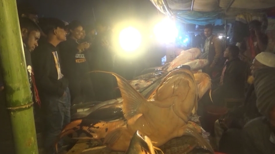 মৌলভীবাজার সংবাদদাতা: পৌষ সংক্রান্তি উপলক্ষে মৌলভীবাজারের শেরপুরে জমে উঠেছে মাছের মেলা। মেলায় ছোট-বড় বিভিন্ন জাতের মাছের পসরা নিয়ে বসেছেন বিক্রেতারা। তবে সবার নজর কাড়ছে ৩৫ কেজি ওজনের বাঘাইড় মাছ। যার দাম হাঁকা হয়েছে সাড়ে তিন লাখ টাকা। মৌলভীবাজারের শেরপুরে কুশিয়ারা নদীর কোল ঘেঁষে বসেছে মাছের মেলা। পৌষ সংক্রান্তি উপলক্ষে দুইশত বছর ধরে চলে আসছে এই মেলা। তিন দিনব্যাপী এই মেলা শুরু হয় রোববার। আজ মেলার শেষ দিন।সিলেট বিভাগ ছাড়াও দেশের বিভিন্ন এলাকা থেকে বাঘা-আইড়, চিতল, বোয়াল, রুই, কাতলাসহ দেশীয় প্রজাতির ছোটবড় মাছ নিয়ে আসেন বিক্রেতারা। ক্রেতারা জানান, এবছর মাছের দাম একটু চড়া। এ বছর ৩ থেকে ৪ কোটি টাকার মাছ বিক্রি হবে বলে জানান শেরপুর মাছের মেলা কমিটির সদস্য মো. হোসেন খান। মেলায় মাছ ছাড়াও রয়েছে নানা রকমের খাবারসহ বিভিন্ন সামগ্রীর দোকান।