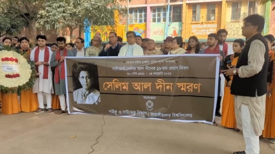 সাভার সংবাদদাতা: নানা আয়োজনের মধ্য দিয়ে জাহাঙ্গীরনগর বিশ্ববিদ্যালয়ের নাটক ও নাট্যতত্ত্ব বিভাগের প্রতিষ্ঠাতা সভাপতি ও রবীন্দ্রোত্তর শ্রেষ্ঠ নাট্যকার নাট্যাচার্য সেলিম আল দীনের ১৭তম মৃত্যুবার্ষিকী পালিত হয়েছে। আজ মঙ্গলবার সকাল থেকে দিনভর জাহাঙ্গীরনগর বিশ্ববিদ্যালয়ের নাটক ও নাট্যতত্ত্ব বিভাগের পক্ষ থেকে এসব আয়োজন করা হয়।