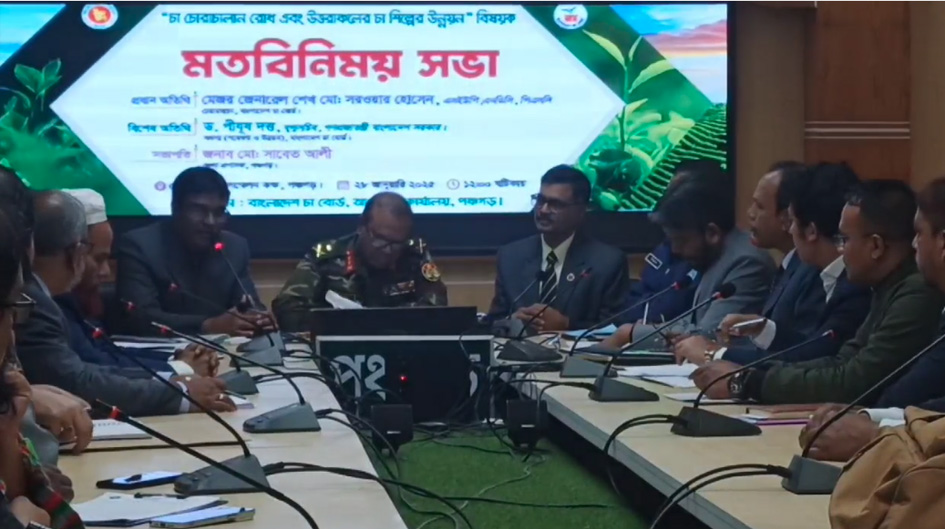 মঙ্গলবার (২৮ জানুয়ারি) দুপুরে বাংলাদেশ চা বোর্ডের পঞ্চগড় আঞ্চলিক কার্যালয়ের আয়োজনে জেলা প্রশাসকের কার্যালয়ে চা চোরাচালান রোধ এবং উত্তরাঞ্চলের চা শিল্পের উন্নয়ন বিষয়ক মতবিনিময় সভায় তিনি এসব কথা বলেন।