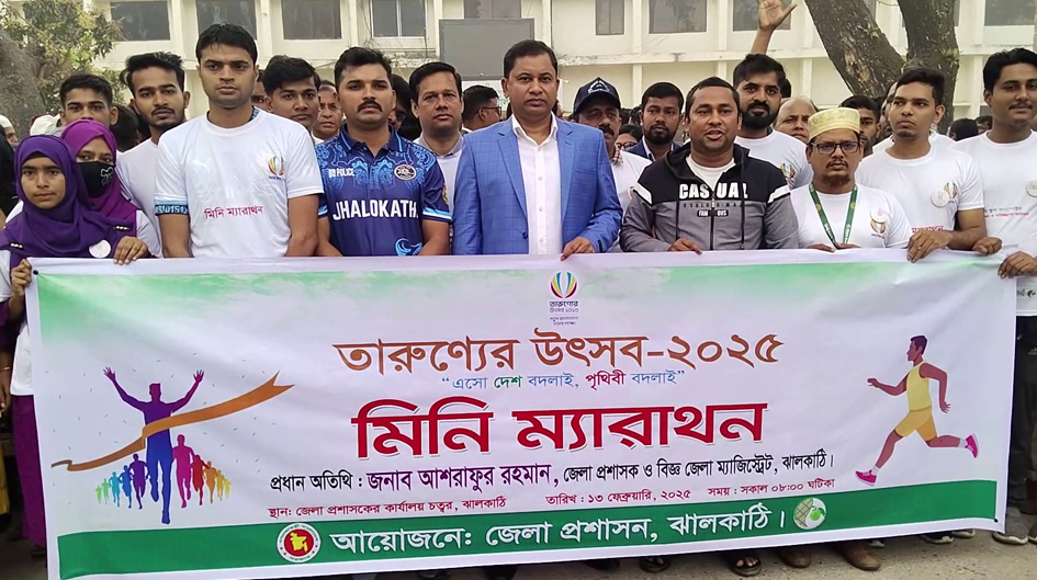 ঝালকাঠি সংবাদদাতা: ‘এসো দেশ বদলাই পৃথিবী বদলাই’ প্রতিপাদ্য নিয়ে ঝালকাঠিতে তারুণ্যের উৎসব উপলক্ষ্যে মিনি ম্যারাথন দৌড় অনুষ্ঠিত হয়েছে। এর উদ্বোধন করেন জেলা প্রশাসক আশরাফুর রহমান।