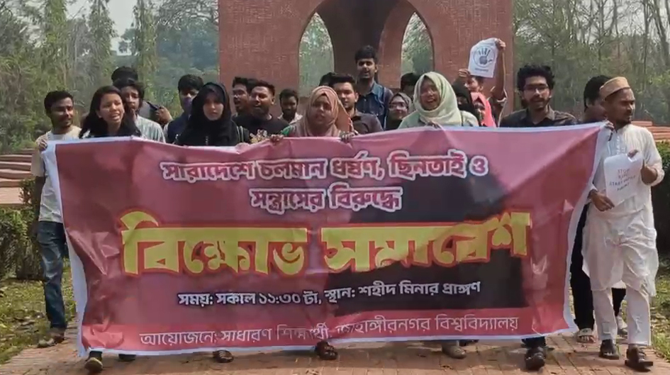 সাভার সংবাদদাতা: সারাদেশে চলমান ধর্ষণ, ছিনতাই ও সন্ত্রাসী কর্মকাণ্ডের প্রতিবাদ জানিয়ে জাহাঙ্গীরনগর বিশ্ববিদ্যালয়ে বিক্ষোভ মিছিল ও সমাবেশ করেছে শিক্ষার্থীরা। রোববার সাধারণ শিক্ষার্থীদের ব্যানারে এই বিক্ষোভ মিছিল ও সমাবেশ করেন শিক্ষার্থীরা।