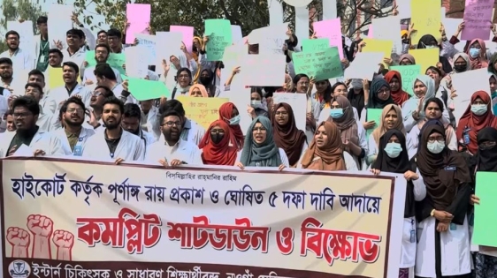 নিজস্ব সংবাদদাতা: এমবিবিএস ও বিডিএস ছাড়া অন্য কাউকে চিকিৎসকের স্বীকৃতি না দেওয়াসহ পাঁচ দফা দাবিতে দ্বিতীয় দিনের মতো দেশের বিভিন্নস্থানে কর্মবিরতি পালন করছেন ইন্টার্ন চিকিৎসকরা। এতে ব্যাহত হচ্ছে বিভিন্ন হাসপাতালে ভর্তি থাকা রোগীদের চিকিৎসা সেবা। তবে, আন্দোলনের আওতামুক্ত রয়েছে জরুরী বিভাগ, অপারেশন সেবা ও বর্হিবিভাগ। এদিকে ক্লাস ও পরীক্ষা বর্জন করে কর্মবিরতি পালন করায়, অচল হয়ে পড়েছে মেডিকেল কলেজগুলোর শিক্ষা কার্যক্রম। রোববার সকাল থেকে চট্টগ্রাম মেডিকেল কলেজ হাসপাতালের সব ওয়ার্ডে দায়িত্ব পালন থেকে বিরতিতে রয়েছেন ইন্টার্ন চিকিৎসবরা। এতে করে ব্যাহত হচ্ছে রোগীদের চিকিৎসা সেবা। ইন্টার্ন চিকিৎসকদের এ কর্মসূচির সাথে একাত্মতা জানিয়েছে চট্টগ্রাম মেডিকেল কলেজের সব বর্ষের শিক্ষার্থীরা। দাবি মানা না হলে কর্মবিরতি চলমান রাখাসহ কঠোর কর্মসূচির হুঁশিয়ারিও দিয়েছেন তারা। এদিকে, এ ঘটনায় হাসপাতাল কর্তৃপক্ষ জানিয়েছে, ইন্টার্ণ চিকিৎসকদের কর্মবিরতির কারণে হাসপাতালে চিকিৎসা ব্যবস্থা কিছুটা ব্যাহত হলেও, ডাক্তার নার্সদের বাড়তি ডিউটির পাশাপাশি স্থায়ী চিকিৎসক এবং বিভিন্ন বিভাগে উচ্চতর কোর্সে অধ্যয়নরত চিকিৎসকেরাও সেবা দিচ্ছেন।হাইকোর্ট কর্তৃক পূর্ণাঙ্গ রায় প্রকাশ ও ৫ দফা দাবি আদায়ে নওগাঁয় হাসপাতাল ও ক্যাম্পাস কমপ্লিট শাটডাউন ঘোষণা করে মেডিকেল কলেজ শিক্ষার্থীরা বিক্ষোভ করেছেন। তাদের দাবিতে সংহতি প্রকাশ করে কর্মসূচিতে অংশ নিয়েছেন ইন্টার্ন চিকিৎসকরাও। পাঁচ দফা দাবি আদায়ে রংপুরে বিক্ষোভ মিছিল ও সড়ক অবরোধ কর্মসুচি পালন করেছে ইন্টার্ন চিকিৎসক ও মেডিকেল কলেজের শিক্ষার্থীরা। সকালে রংপুর মেডিকেল কলেজের মূল ফটক থেকে মিছিল বের করে শহীদ মুখতার এলাহী চত্ত্বরে এসে সড়ক অবরোধ এবং ঘন্টাবাপি অবস্থান কর্মসূচি পালন করে তারা। বিক্ষোভ শেষে জেলা প্রশাসকের কার্যালয়ে গিয়ে তাকে স্মারকলিপি প্রদান করেন।‘এমবিবিএস ছাড়া ডাক্তার নয়’ এই স্লোগানে কুষ্টিয়া মেডিকেল কলেজে কমপ্লিট শাটডাউন ও বিক্ষোভ মিছিল-সমাবেশ করেছে ইন্টার্ন চিকিৎসক ও শিক্ষার্থীরাও।