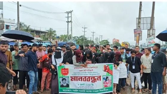 ব্রাহ্মণবাড়িয়া সরাইল উপজেলার শাহবাজপুর গ্রামে ৯ বছরের শিশু মাইমুনা আক্তার ময়নার নৃশংস হত্যার প্রতিবাদে এবং দ্রুত বিচার ও দৃষ্টান্তমূলক শাস্তির দাবিতে মানববন্ধন করেছে শিক্ষার্থী ও জনসাধারন। আগামী ১২ ঘন্টার মধ্যে গ্রেফতার করার জন্য হুশিয়ারি দিয়ে ছাত্র জনতা।